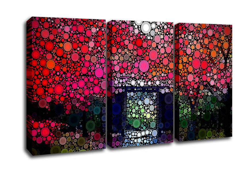 Circles In The Garden 3 Panel Canvas Print handmade in the UK. Stretched over a 2 inch thick wooden box frame, ready to hang on your wall.