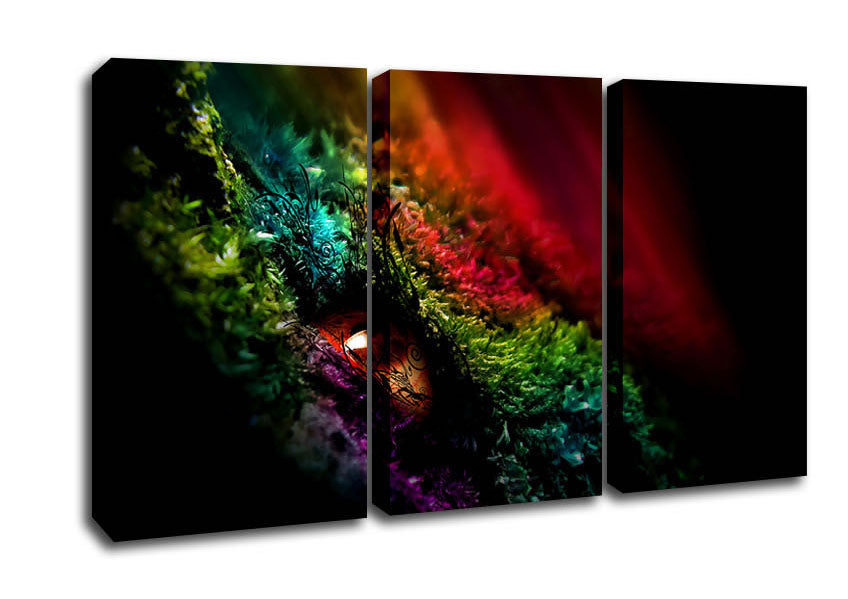 Eye Of The Rainbow 3 Panel Canvas Print handmade in the UK. Stretched over a 2 inch thick wooden box frame, ready to hang on your wall.