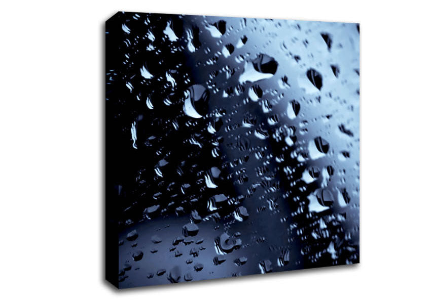 Blue Rain Square Canvas Print handmade in the UK. Stretched over a 2 inch thick wooden box frame, ready to hang on your wall.