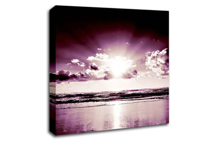 Purple Sunbeams Square Canvas Print handmade in the UK. Stretched over a 2 inch thick wooden box frame, ready to hang on your wall.