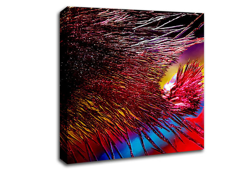 Rainbow Feathers Square Canvas Print handmade in the UK. Stretched over a 2 inch thick wooden box frame, ready to hang on your wall.