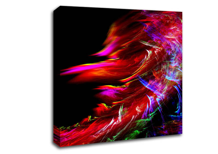 Rainbow Inferno Square Canvas Print handmade in the UK. Stretched over a 2 inch thick wooden box frame, ready to hang on your wall.
