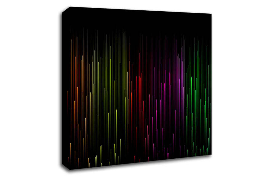 Rainbow Lines Square Canvas Print handmade in the UK. Stretched over a 2 inch thick wooden box frame, ready to hang on your wall.
