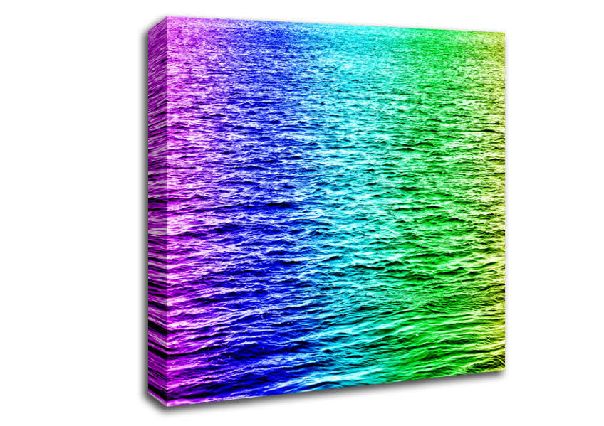 Rainbow Waters Square Canvas Print handmade in the UK. Stretched over a 2 inch thick wooden box frame, ready to hang on your wall.