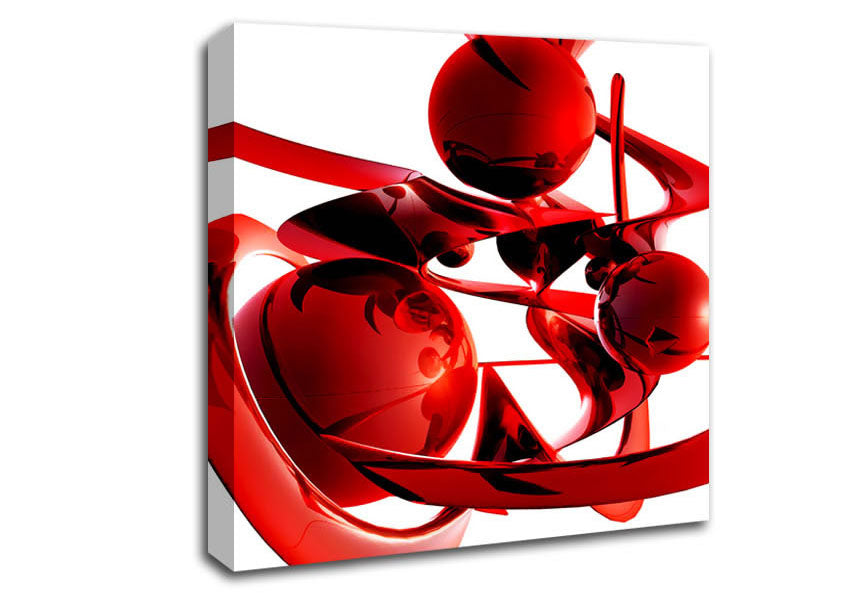Red Balls Spiralling Square Canvas Print handmade in the UK. Stretched over a 2 inch thick wooden box frame, ready to hang on your wall.