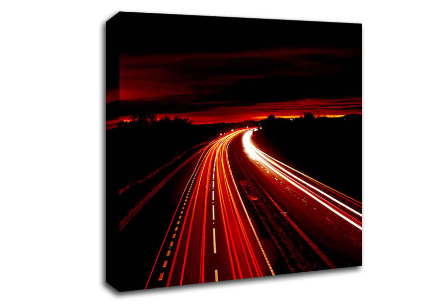 Red Fire Road Square Canvas Print handmade in the UK. Stretched over a 2 inch thick wooden box frame, ready to hang on your wall.