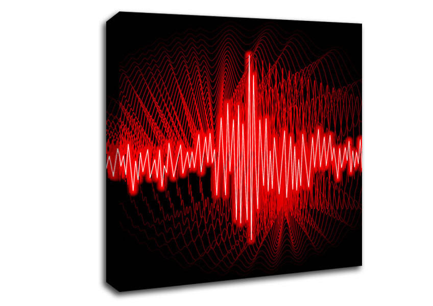 Red Frequency Square Canvas Print handmade in the UK. Stretched over a 2 inch thick wooden box frame, ready to hang on your wall.