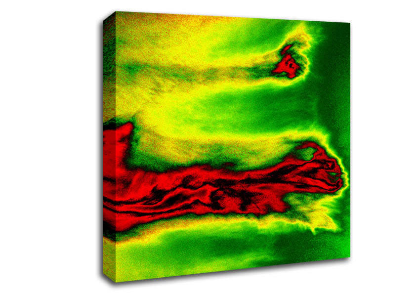 Red Liquid Lava Square Canvas Print handmade in the UK. Stretched over a 2 inch thick wooden box frame, ready to hang on your wall.