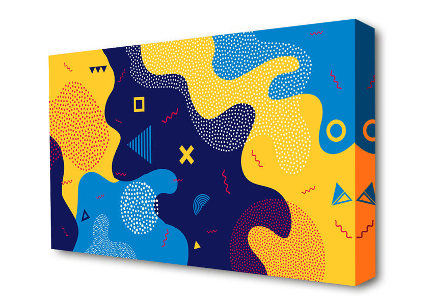 Blue And Yellow Modern Shapes Canvas Print handmade in the UK. Stretched over a 2 inch thick wooden box frame, ready to hang on your wall.