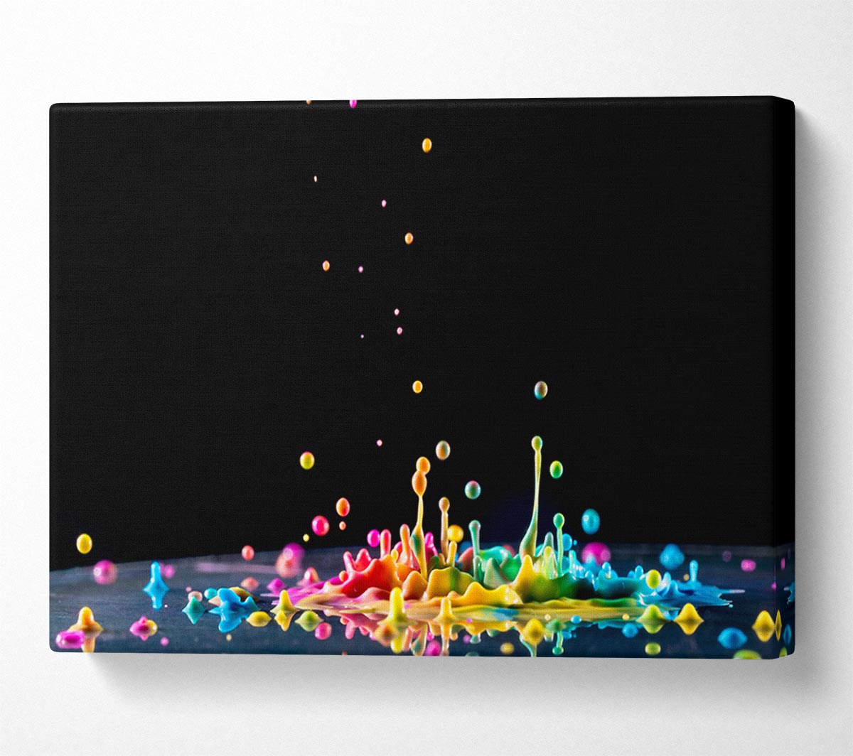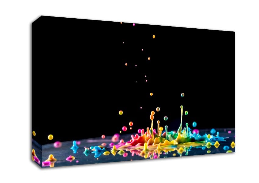 Colour splashes on a surface Canvas Print handmade in the UK. Stretched over a 2 inch thick wooden box frame, ready to hang on your wall.
