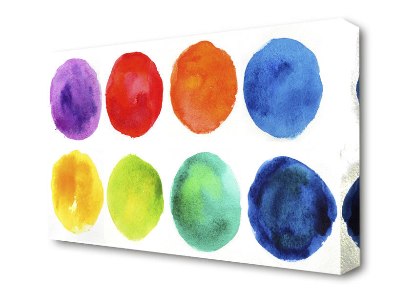 Eight Blobs Of Colour Canvas Print handmade in the UK. Stretched over a 2 inch thick wooden box frame, ready to hang on your wall.