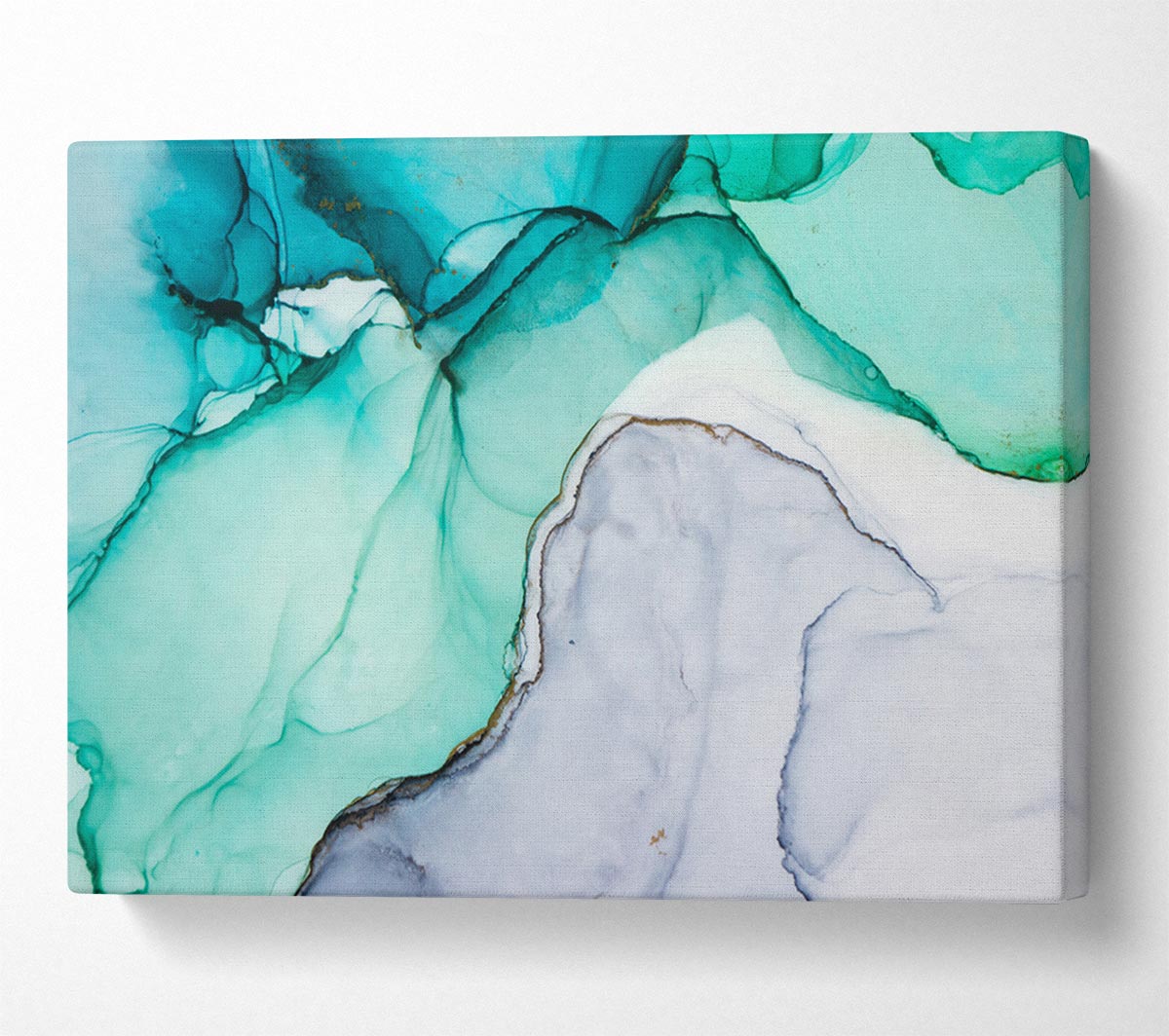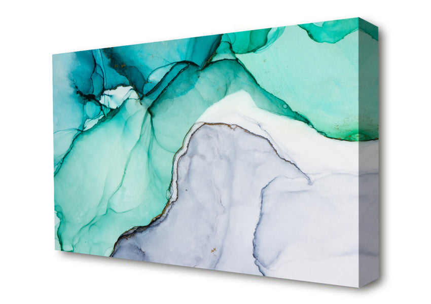 Flow Of Green To Blue Liquid Canvas Print handmade in the UK. Stretched over a 2 inch thick wooden box frame, ready to hang on your wall.