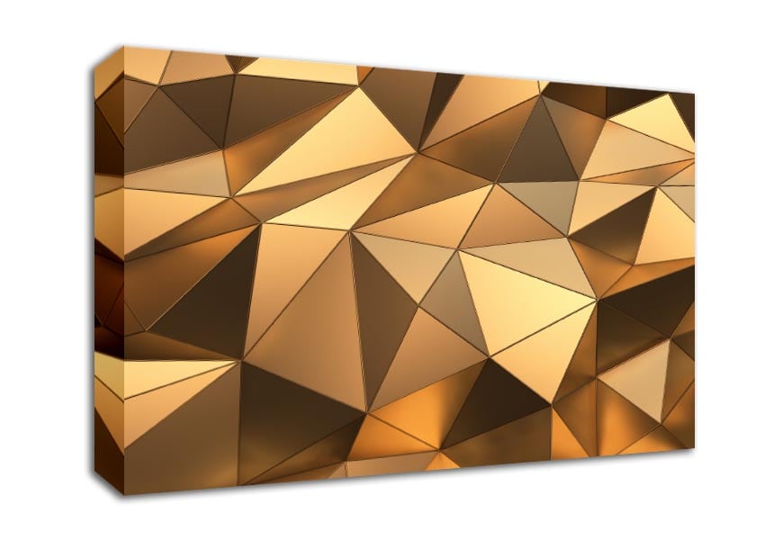 Gold Geometric Triangles shining Canvas Print handmade in the UK. Stretched over a 2 inch thick wooden box frame, ready to hang on your wall.