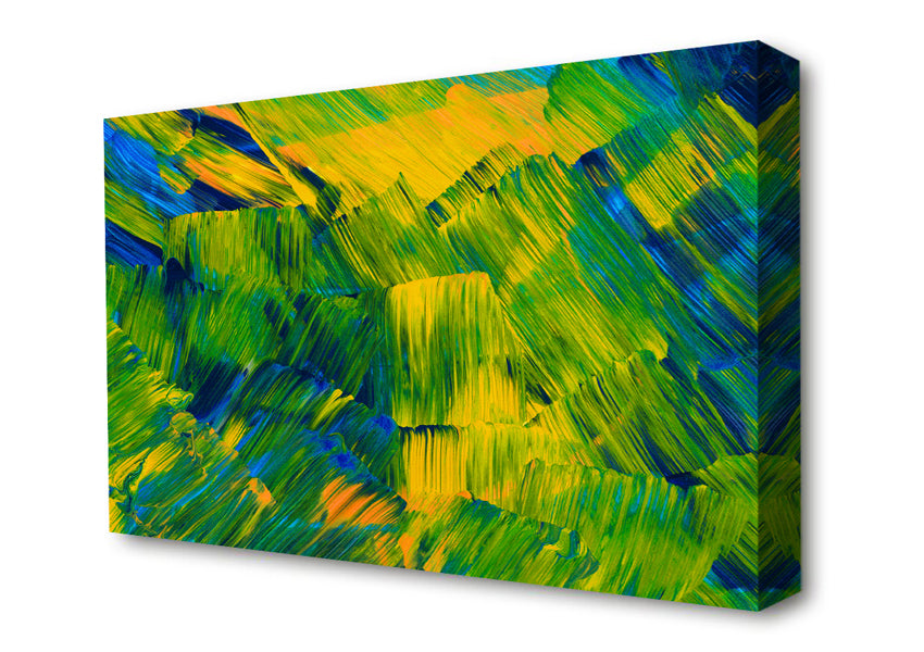 Green On Yellow Flat Brush Trokes Canvas Print handmade in the UK. Stretched over a 2 inch thick wooden box frame, ready to hang on your wall.