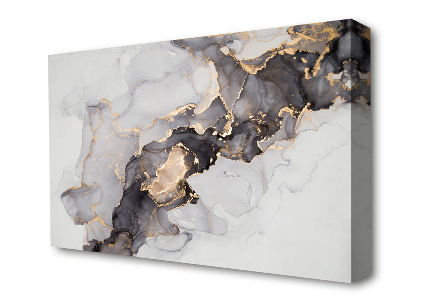 Grey And Gold Marble Canvas Print handmade in the UK. Stretched over a 2 inch thick wooden box frame, ready to hang on your wall.