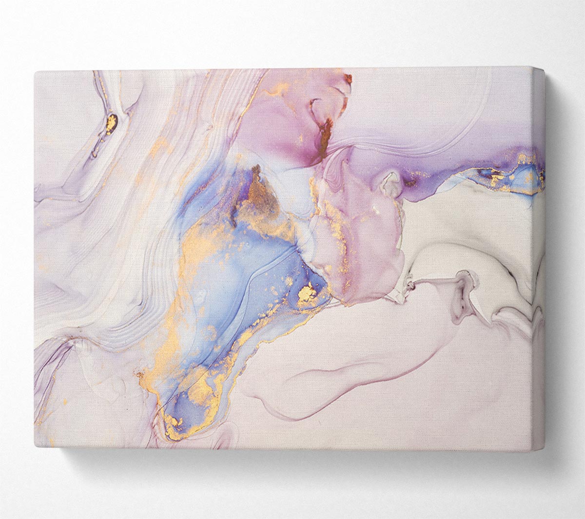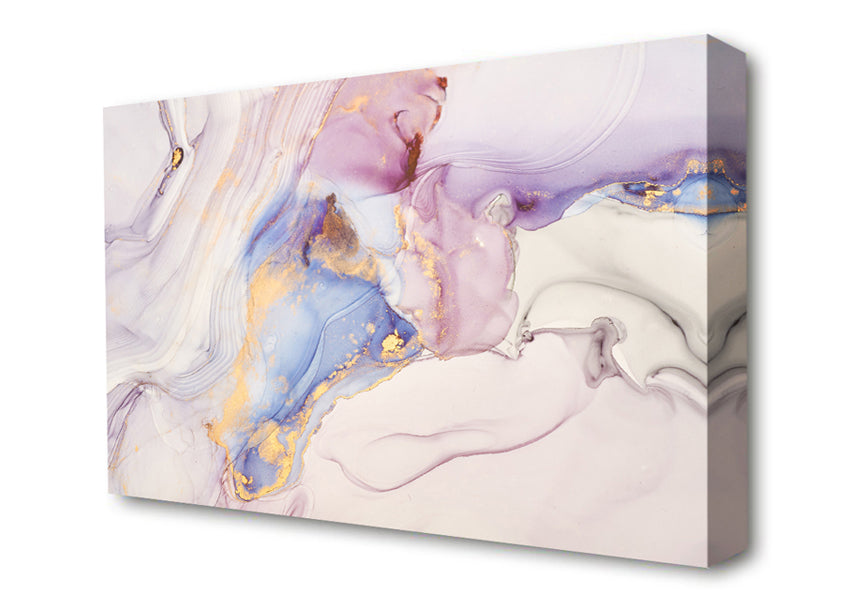 Lilac And Blue Marble Pattern Canvas Print handmade in the UK. Stretched over a 2 inch thick wooden box frame, ready to hang on your wall.