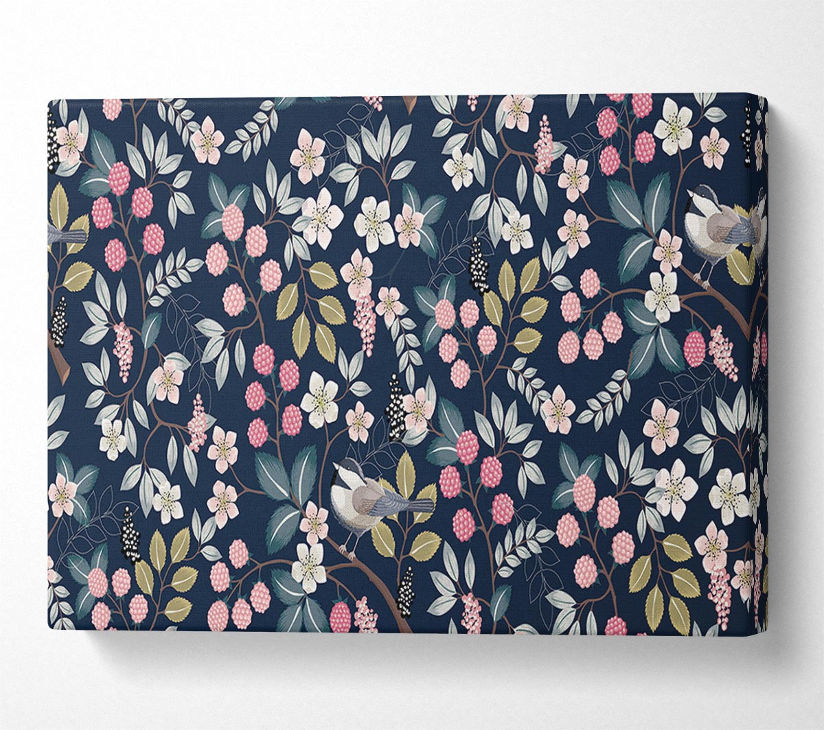 Little Flower Pattern Canvas Print handmade in the UK. Stretched over a 2 inch thick wooden box frame, ready to hang on your wall.