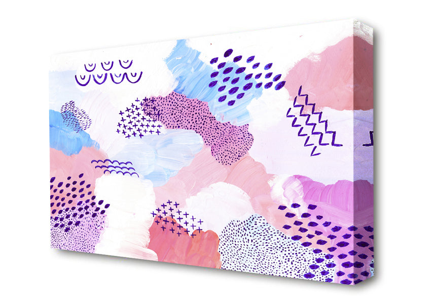 Mid Century Lilac Patterns Canvas Print handmade in the UK. Stretched over a 2 inch thick wooden box frame, ready to hang on your wall.