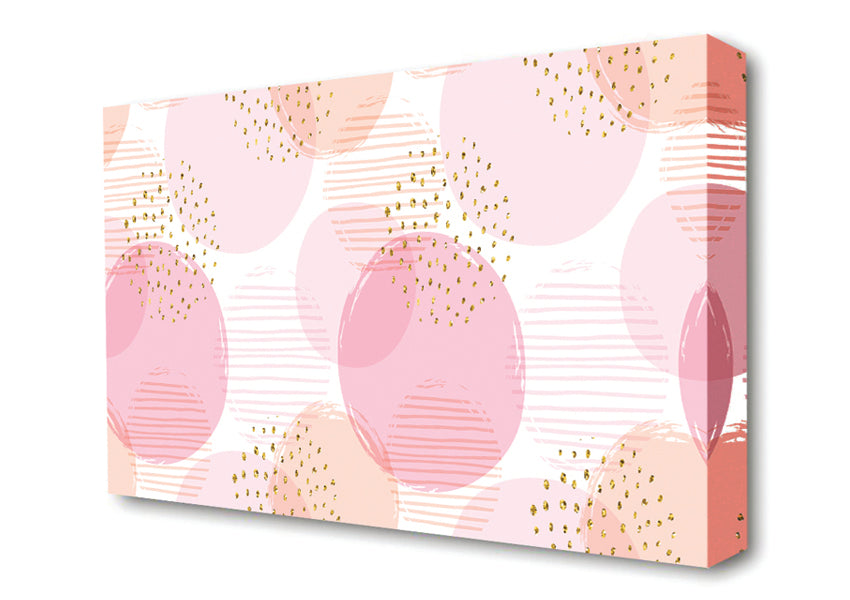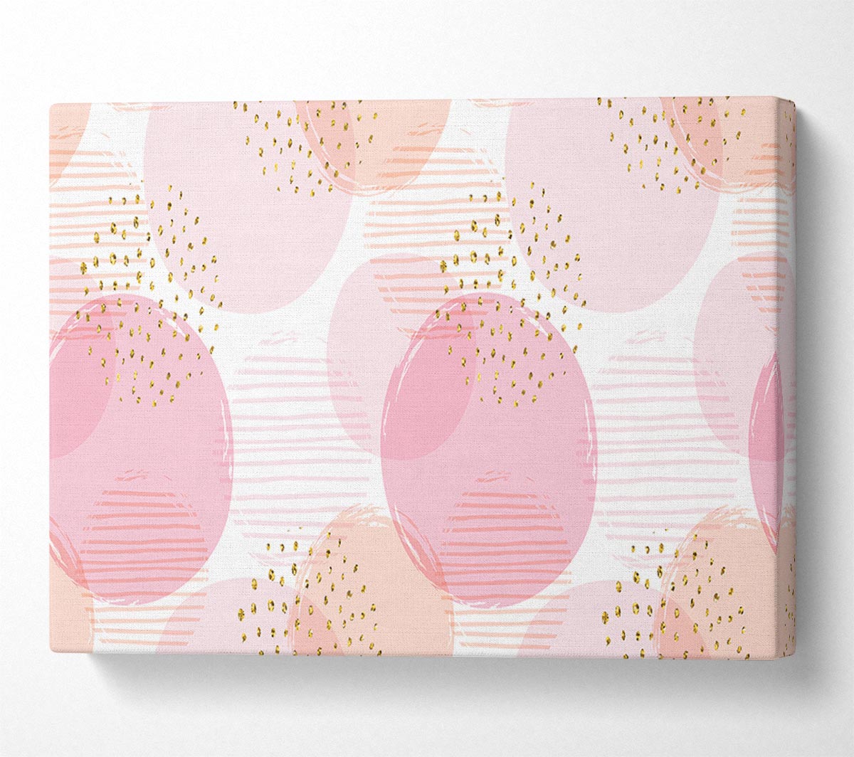 Peach Circles And Dots Canvas Print handmade in the UK. Stretched over a 2 inch thick wooden box frame, ready to hang on your wall.