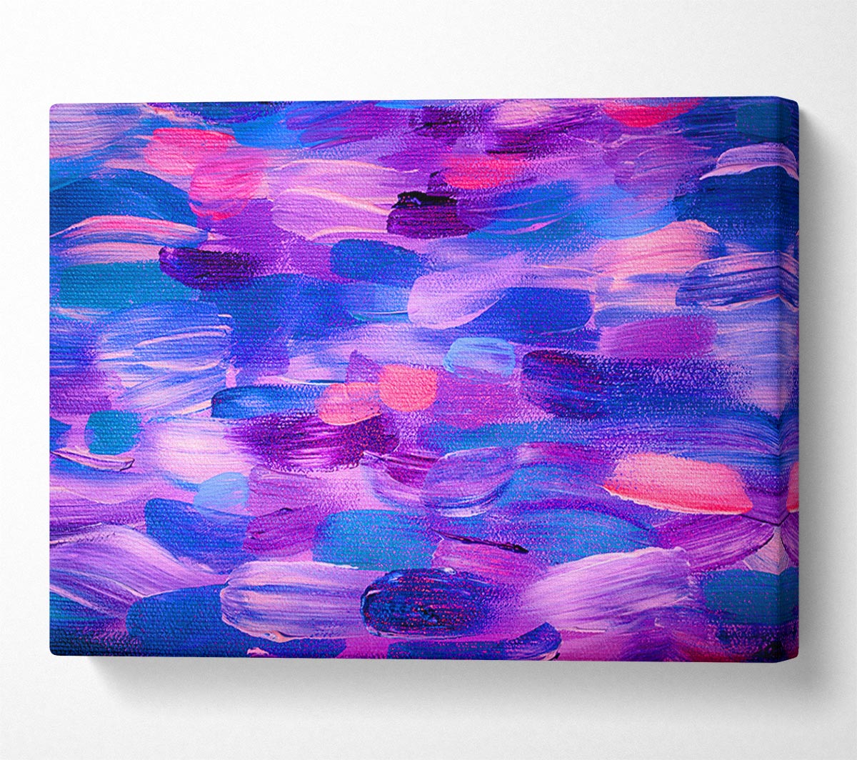 Purple And Lilac Brush Strokes Canvas Print handmade in the UK. Stretched over a 2 inch thick wooden box frame, ready to hang on your wall.