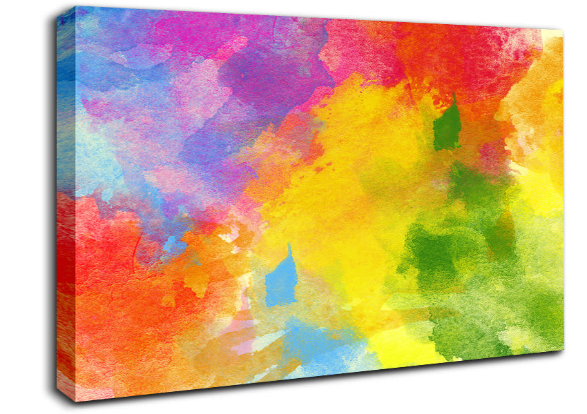 Rainbow Clouds Canvas Print handmade in the UK. Stretched over a 2 inch thick wooden box frame, ready to hang on your wall.