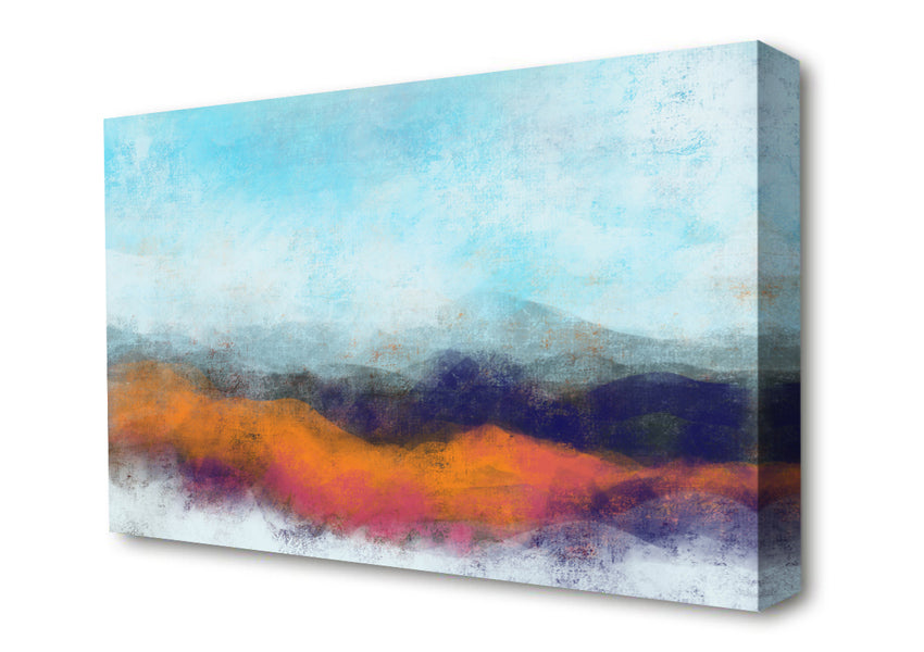 Rough Orange And Blue Canvas Print handmade in the UK. Stretched over a 2 inch thick wooden box frame, ready to hang on your wall.