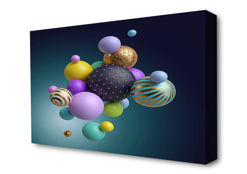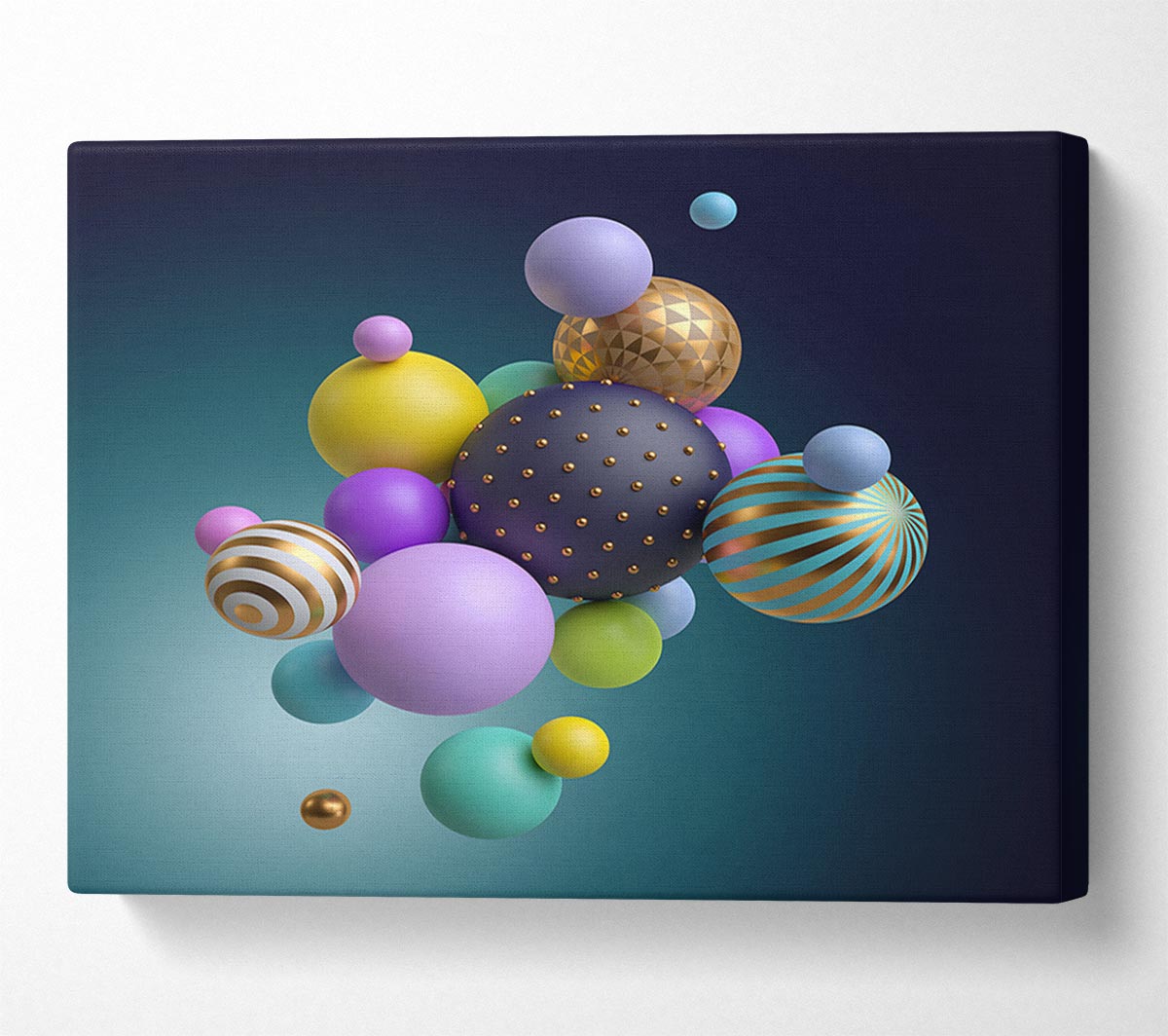 Spheres Of Three Dimensional Abstract Canvas Print handmade in the UK. Stretched over a 2 inch thick wooden box frame, ready to hang on your wall.