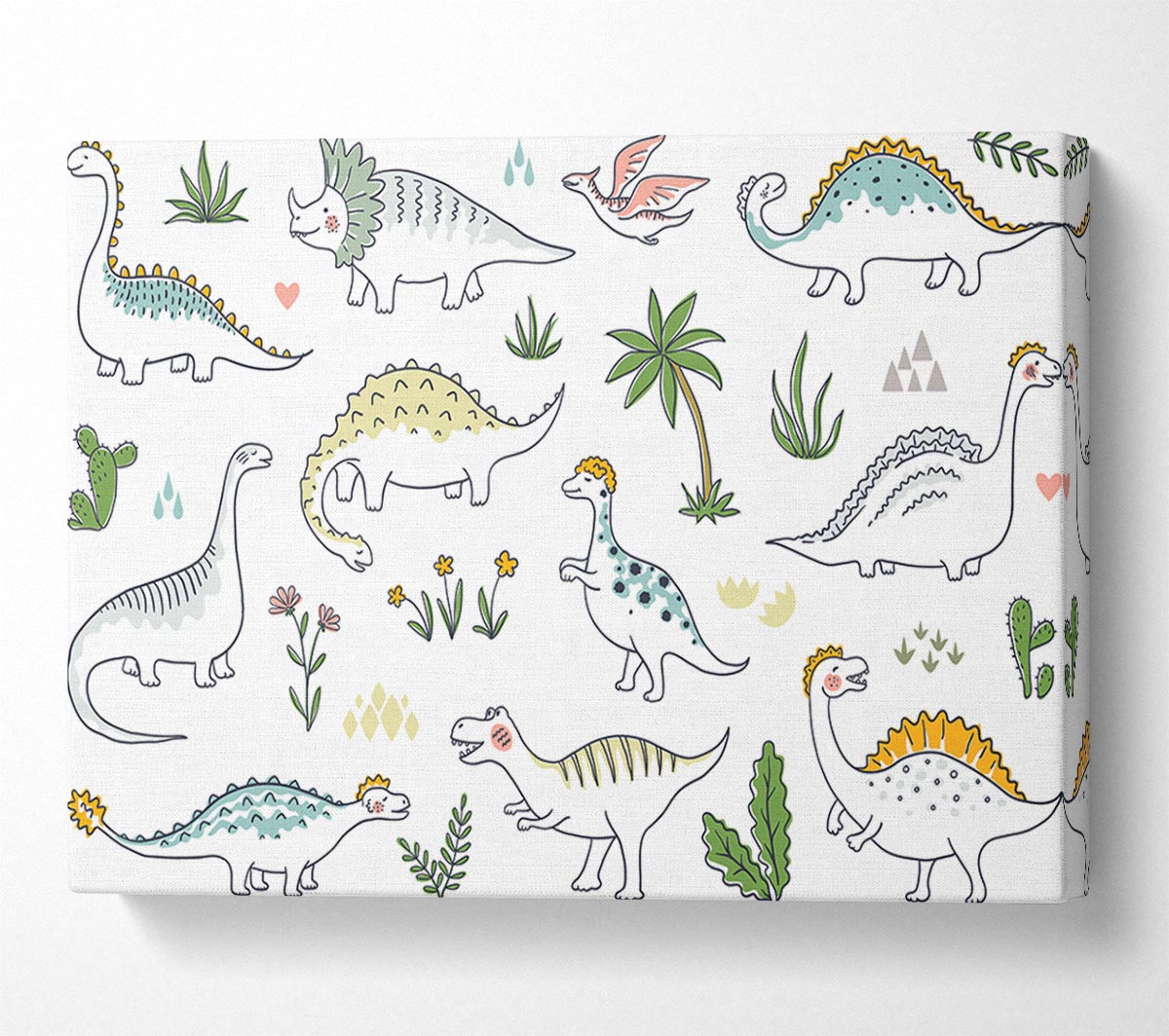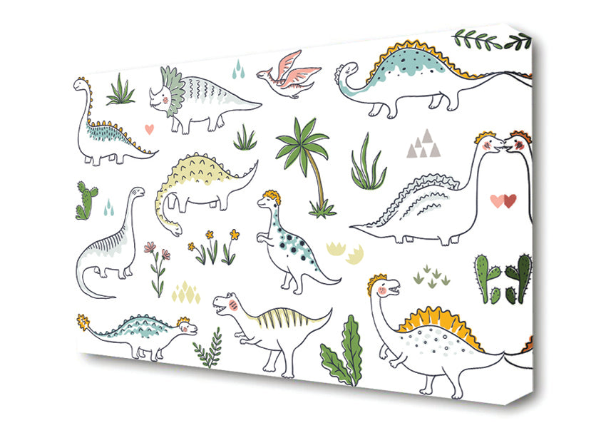 The Dino Pattern Canvas Print handmade in the UK. Stretched over a 2 inch thick wooden box frame, ready to hang on your wall.