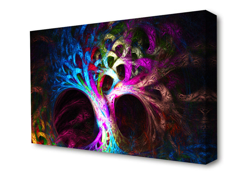 The Tree Of Life In Colour Canvas Print handmade in the UK. Stretched over a 2 inch thick wooden box frame, ready to hang on your wall.