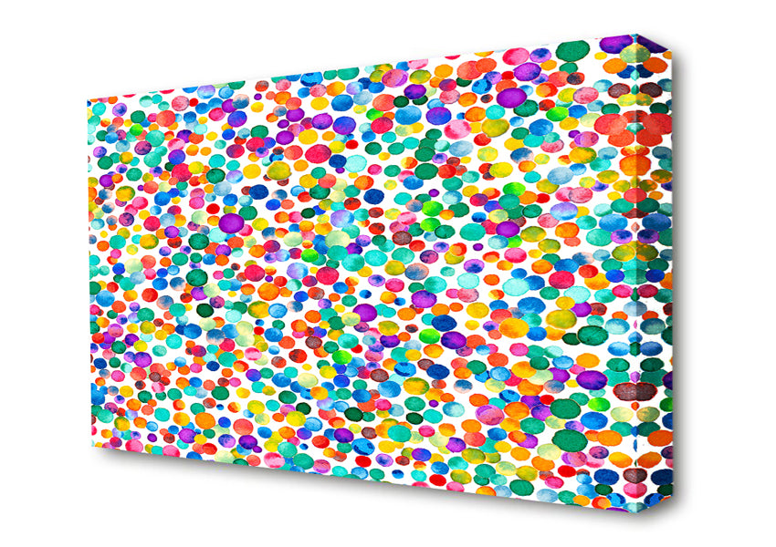 Thousands Of Watercolour Dots Canvas Print handmade in the UK. Stretched over a 2 inch thick wooden box frame, ready to hang on your wall.