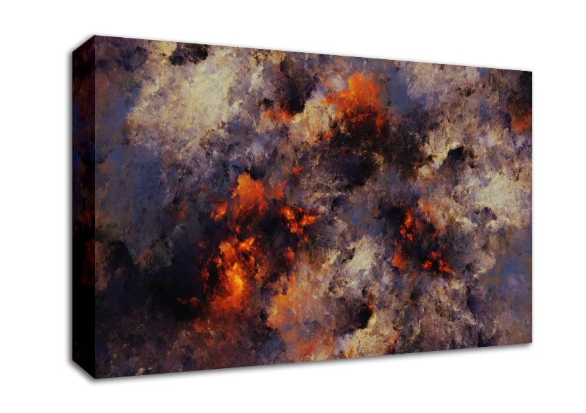 Volcanic ash colour splash Canvas Print handmade in the UK. Stretched over a 2 inch thick wooden box frame, ready to hang on your wall.