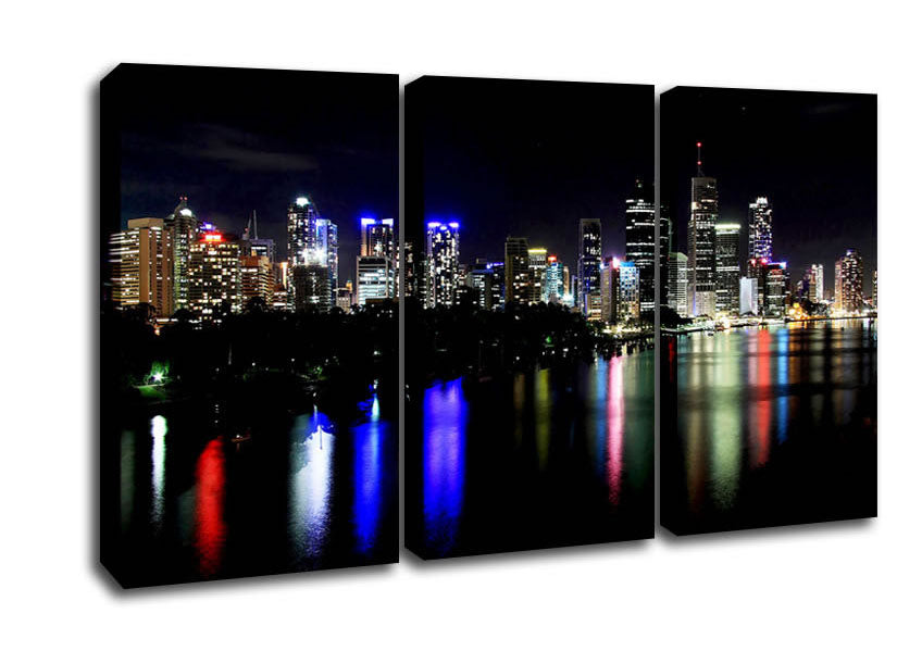 Hong Kong Rainbow Light Reflections 3 Panel Canvas Print handmade in the UK. Stretched over a 2 inch thick wooden box frame, ready to hang on your wall.
