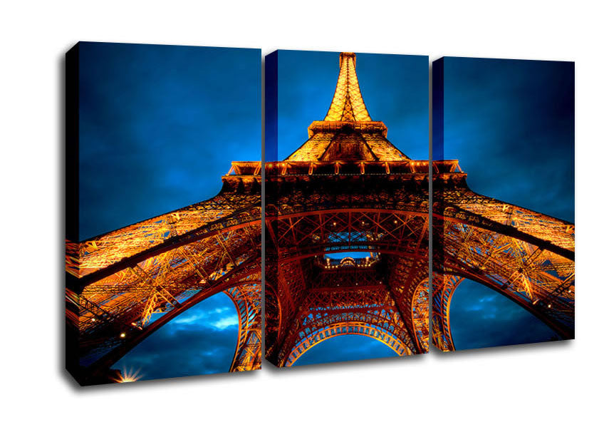 La Tour Eiffel Tower 3 Panel Canvas Print handmade in the UK. Stretched over a 2 inch thick wooden box frame, ready to hang on your wall.