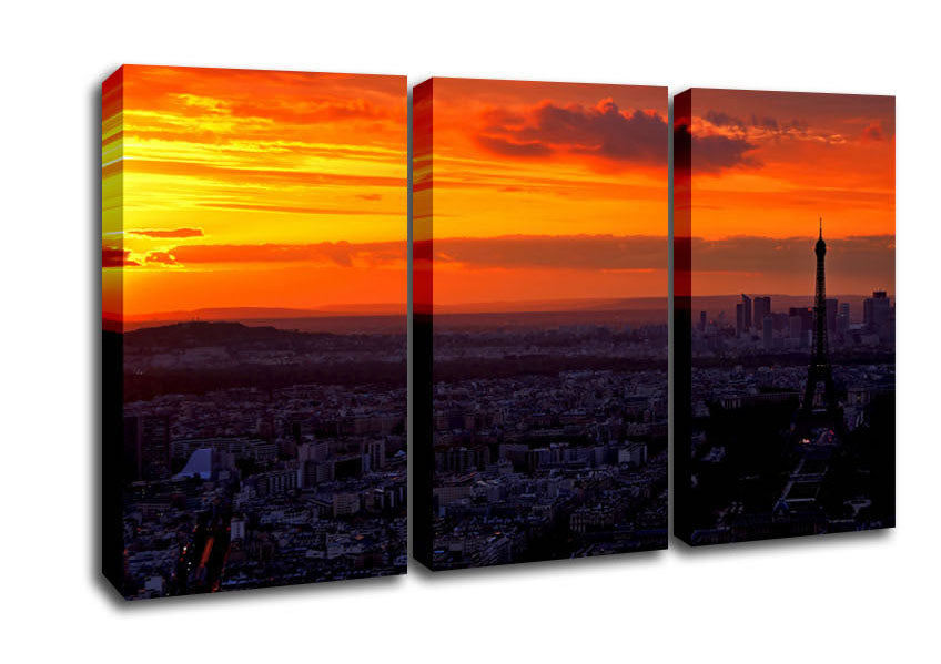 Paris At Dawn 3 Panel Canvas Print handmade in the UK. Stretched over a 2 inch thick wooden box frame, ready to hang on your wall.