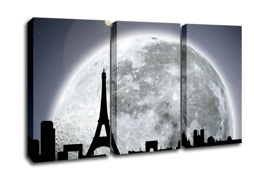 Paris By Moonlight 3 Panel Canvas Print handmade in the UK. Stretched over a 2 inch thick wooden box frame, ready to hang on your wall.