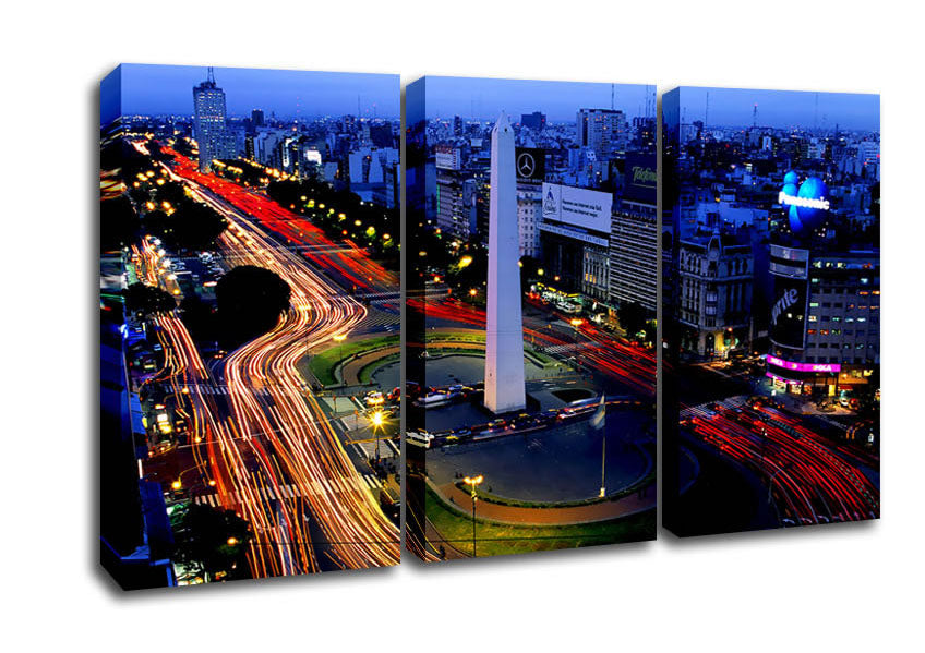 Paris Roads At Night 3 Panel Canvas Print handmade in the UK. Stretched over a 2 inch thick wooden box frame, ready to hang on your wall.