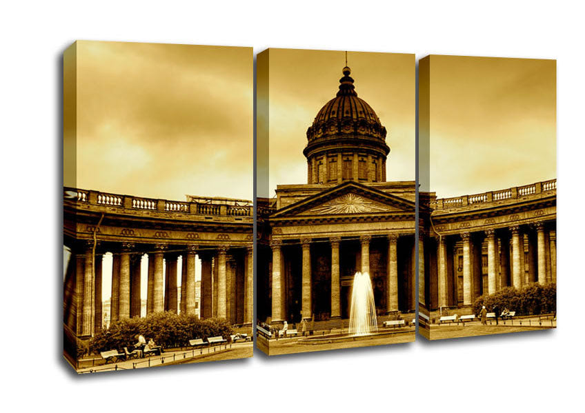 Rome Retro 3 Panel Canvas Print handmade in the UK. Stretched over a 2 inch thick wooden box frame, ready to hang on your wall.