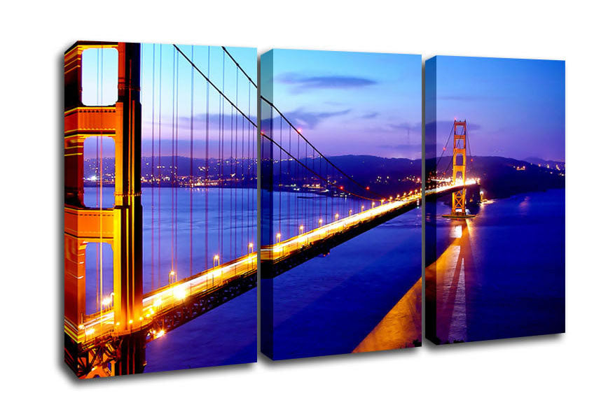 San Francisco Bridge Afar 3 Panel Canvas Print handmade in the UK. Stretched over a 2 inch thick wooden box frame, ready to hang on your wall.
