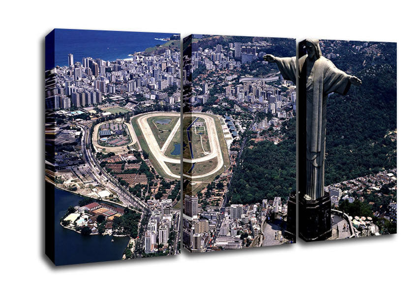 Statue Of Christ The Redeemer Rio De Janeiro Brazil 3 Panel Canvas Print handmade in the UK. Stretched over a 2 inch thick wooden box frame, ready to hang on your wall.
