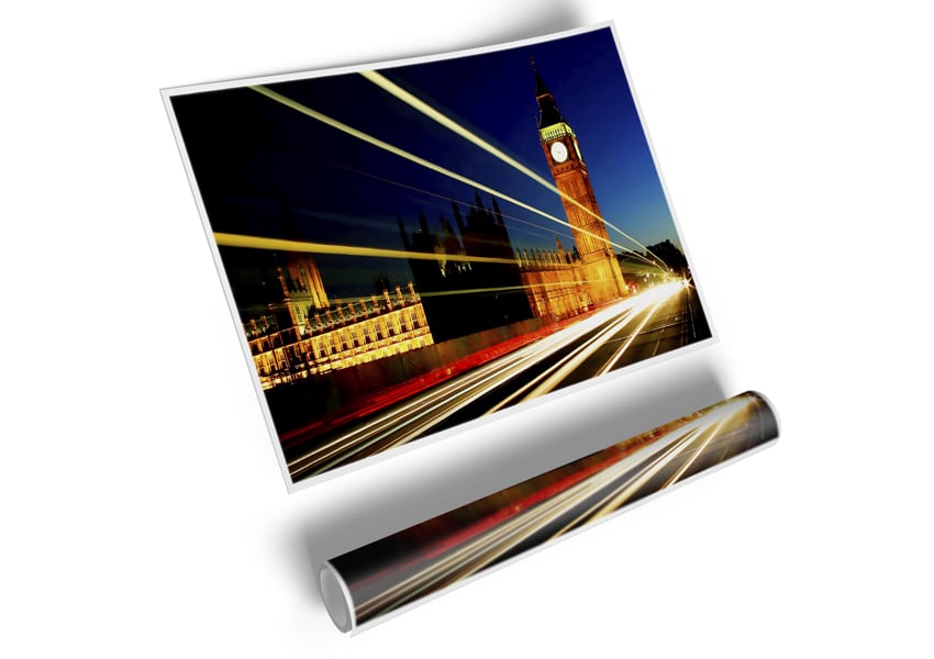 London Big Ben Lights Poster printed on high quality canvas paper, ready to display.