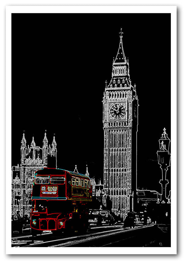 London Big Ben Red Bus Poster printed on high quality canvas paper, ready to display.