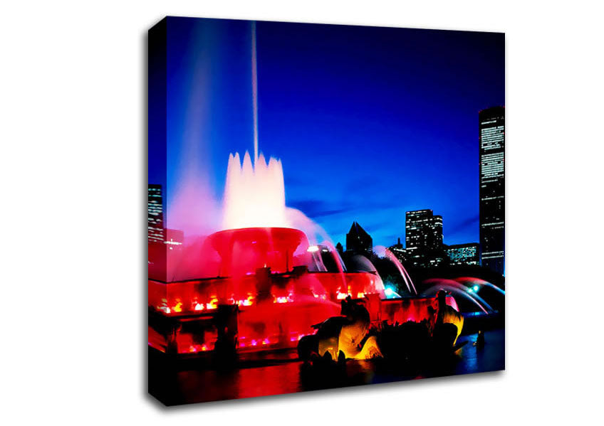 City Fountain Of Youth Square Canvas Print handmade in the UK. Stretched over a 2 inch thick wooden box frame, ready to hang on your wall.