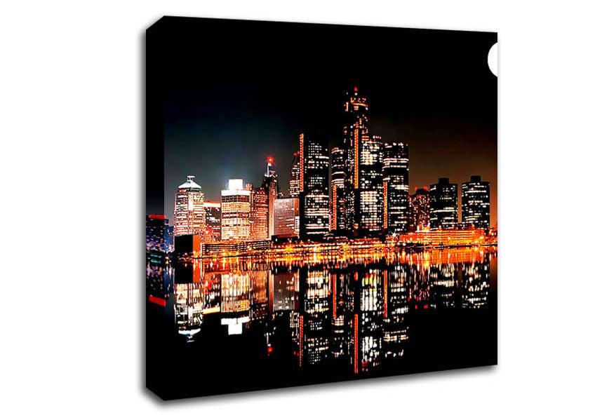 City Moonlit Reflections Square Canvas Print handmade in the UK. Stretched over a 2 inch thick wooden box frame, ready to hang on your wall.