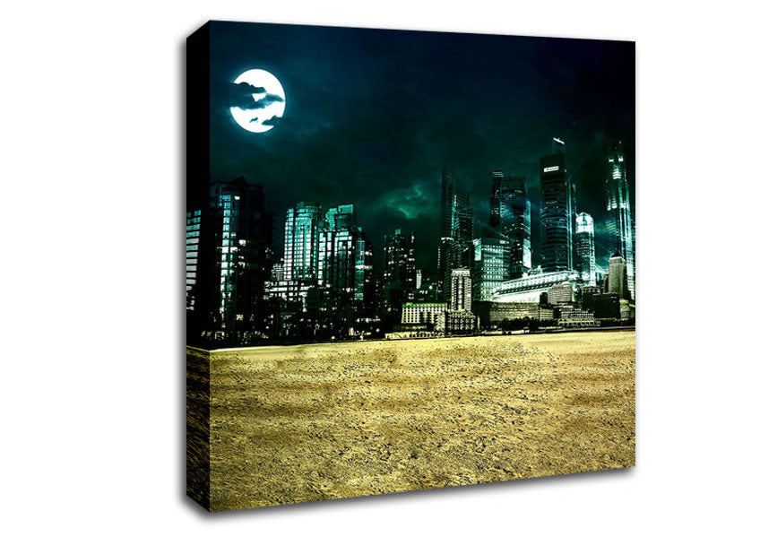 City Night Moonlight Square Canvas Print handmade in the UK. Stretched over a 2 inch thick wooden box frame, ready to hang on your wall.