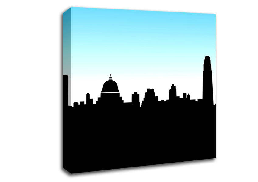 City Skyline Silhouette Square Canvas Print handmade in the UK. Stretched over a 2 inch thick wooden box frame, ready to hang on your wall.