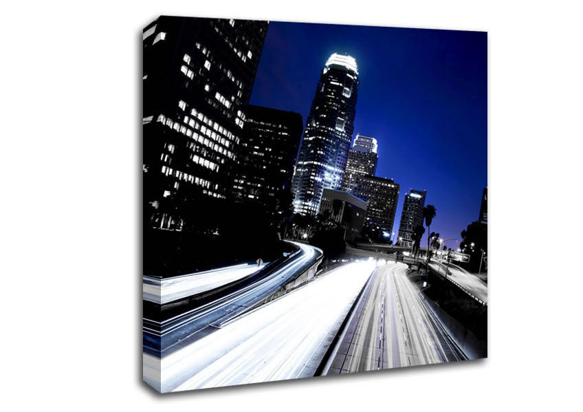 City Speedways Square Canvas Print handmade in the UK. Stretched over a 2 inch thick wooden box frame, ready to hang on your wall.