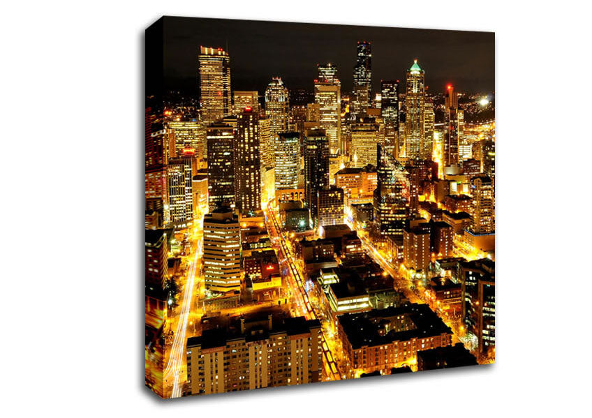 Citylights Square Canvas Print handmade in the UK. Stretched over a 2 inch thick wooden box frame, ready to hang on your wall.