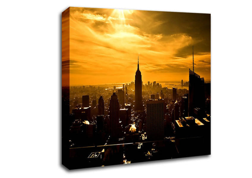 Empire State Building New York City Golden Sunset Square Canvas Print handmade in the UK. Stretched over a 2 inch thick wooden box frame, ready to hang on your wall.