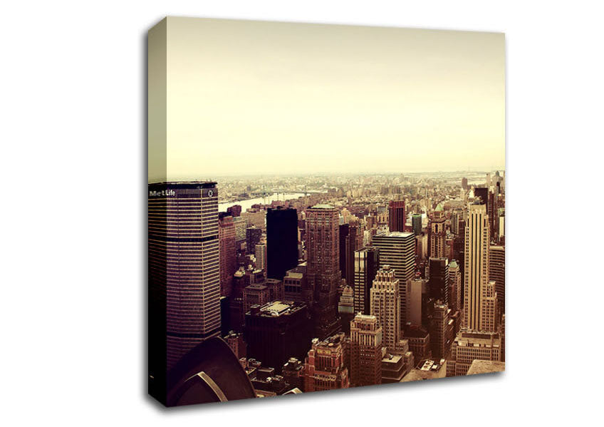 Empire State Building Retro Square Canvas Print handmade in the UK. Stretched over a 2 inch thick wooden box frame, ready to hang on your wall.