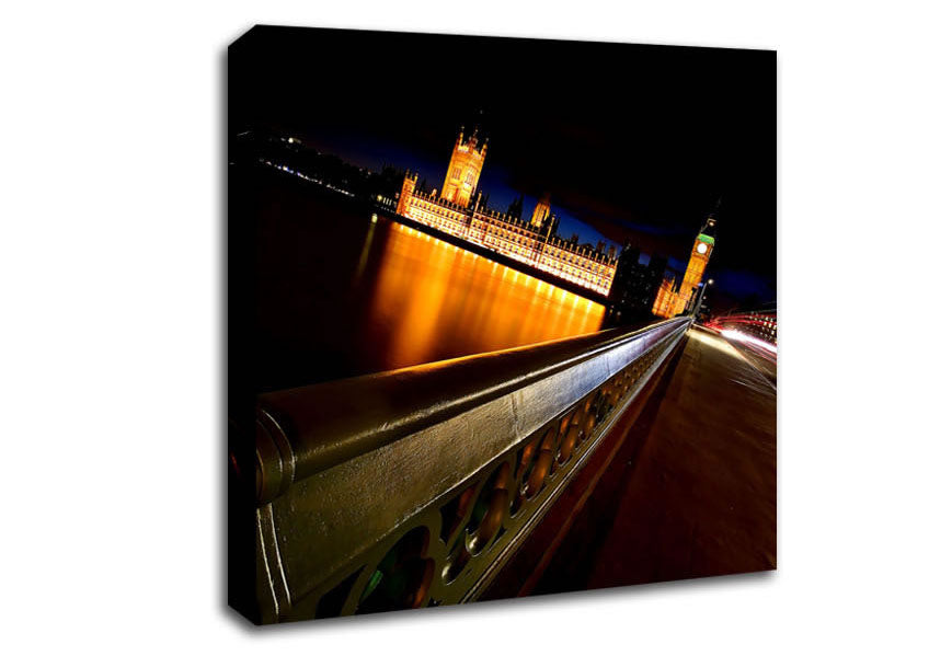 River Thames London Square Canvas Print handmade in the UK. Stretched over a 2 inch thick wooden box frame, ready to hang on your wall.